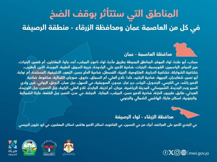 أوضحت الوزارة أن الهدف من إجراء عمليات وقف الضخ الحالية هو تنفيذ برامج الصيانة الدورية السنوية، والتي تعد ضرورية للحفاظ على استمرارية وديمومة ضخ المياه لجميع المشتركين والمناطق المستفيدة. وبينت الجهات المعنية أن هذا التوقف المبرمج لخط الديسي سينعكس تأثيره بشكل جزئي على توزيع المياه في مناطق محددة ضمن محافظتي العاصمة عمّان والزرقاء.