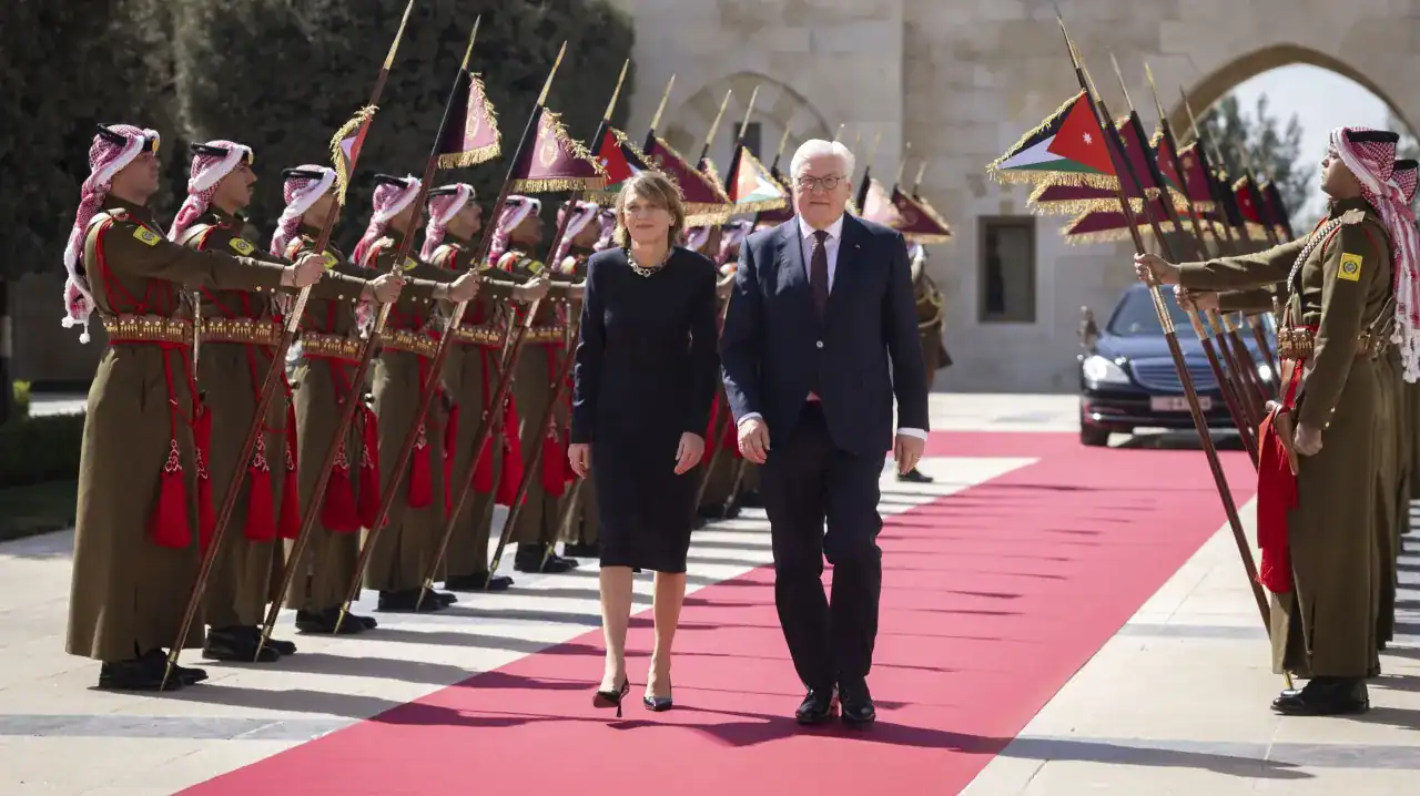 غادر الرئيس الألماني فرانك فالتر شتاينماير، ترافقه السيدة الأولى إلكه بودنبندر، العاصمة عمان يوم الأربعاء، مختتماً بذلك زيارة رسمية للمملكة الأردنية الهاشمية. وشهدت هذه الزيارة عقد مباحثات قمة هامة مع جلالة الملك عبدالله الثاني، تركزت حول سبل تعزيز الشراكة الثنائية ومناقشة أبرز القضايا والتطورات الإقليمية.