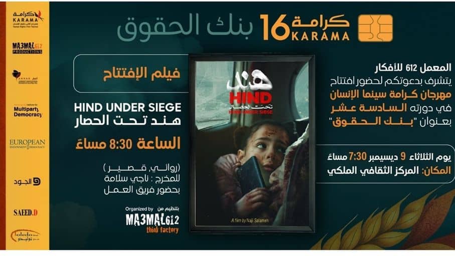 الليلة في عمان.. “هند تحت الحصار” يقص شريط افتتاح مهرجان “كرامة 16”