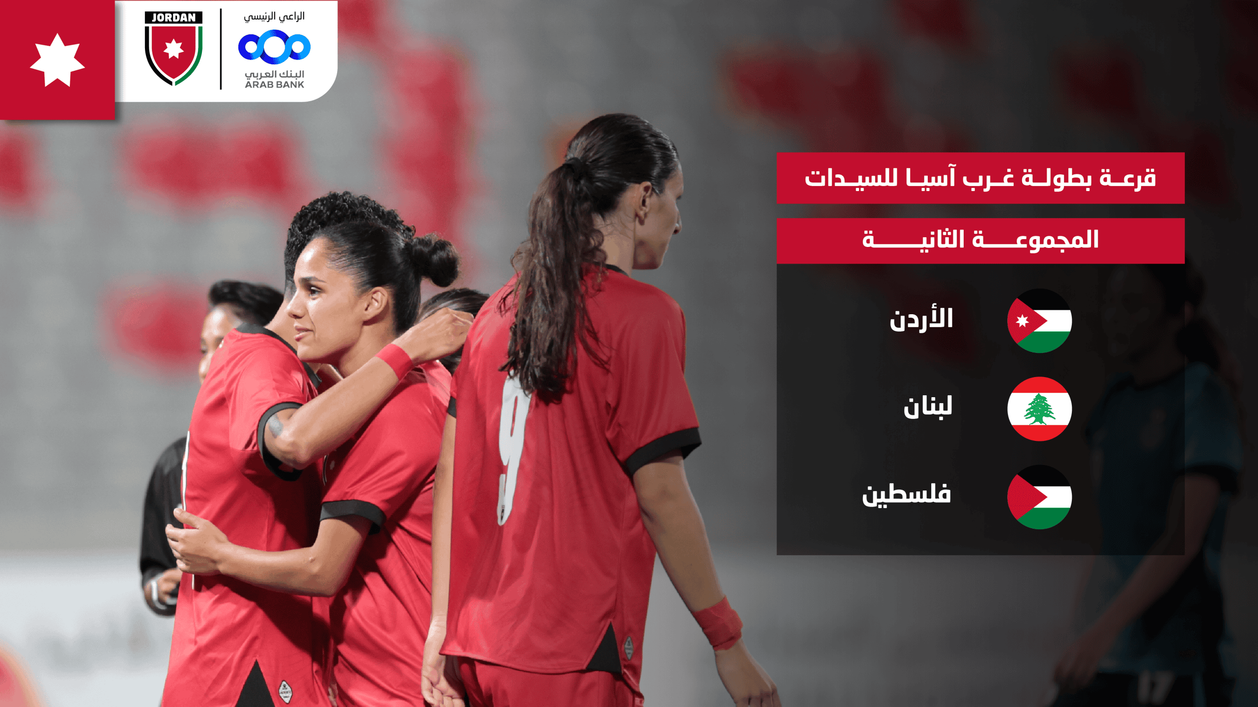 أوقعت القرعة منتخب النشميات في المجموعة «ب» إلى جانب لبنان وفلسطين، فيما تضم المجموعة «أ» منتخبات السعودية والعراق والإمارات. ووفق لوائح المسابقة، تُقسَّم الفرق إلى مجموعتين وتُلعب مباريات الدور الأول بنظام الدوري من مرحلة واحدة، على أن يتأهل صاحبا المركزين الأول والثاني من كل مجموعة إلى الدور نصف النهائي.