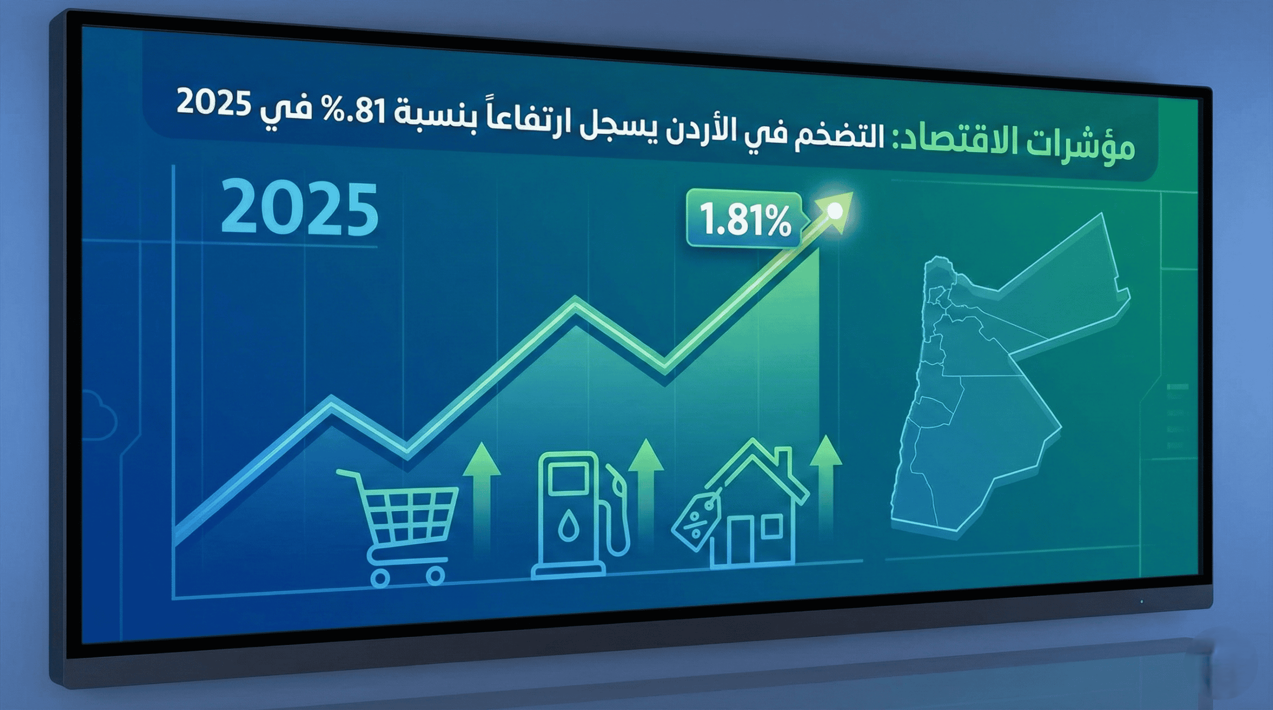 كشفت أحدث البيانات الصادرة عن دائرة الإحصاءات العامة في تقريرها الشهري عن حركة أسعار المستهلك (التضخم) في المملكة، حيث أظهرت الأرقام تسجيل ارتفاع في الرقم القياسي العام بنسبة 1.81% خلال الأشهر الأحد عشر الأولى من عام 2025، وذلك مقارنة بالفترة ذاتها من العام المنصرم 2024.