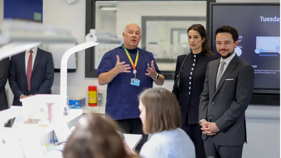 كما جال سمو ولي العهد وسمو الأميرة رجوة في مرافق الكلية التقنية، واستمعا إلى شرح مفصل حول أساليب التدريس والتدريب التقني المتبعة فيها.
